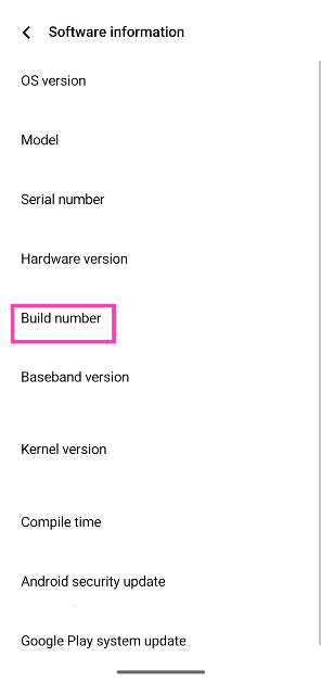 Schritt 3:Finden Sie dieBuild-Nummerund tippen Sie darauf5 Mal.