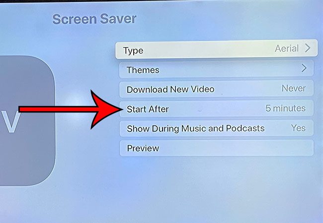 Wenn der Apple TV keine Aktivität gibt, wird der Bildschirmschoner nach einem festgelegten Zeitraum eingeschaltet. Es ist wahrscheinlich, dass die aktuelle Dauer auf fünf Minuten festgelegt ist.