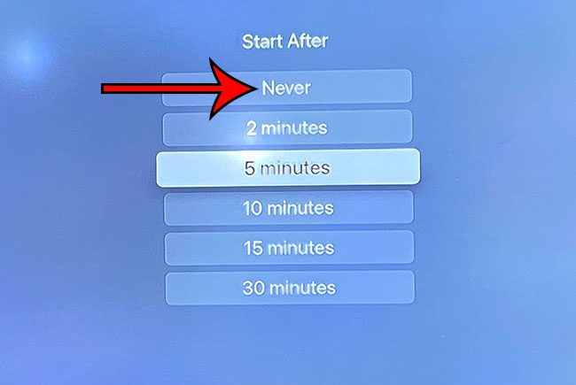 Schritt 5: Wählen Sie die ausNiemalsOption zum Deaktivieren des Bildschirmschoners.
