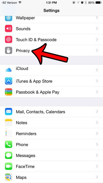 Schritt 2: Scrollen Sie nach unten und wählen Sie das ausPrivatsphäreOption. Beachten Sie, dass Sie auf diese Einstellung auch über zugreifen könneniCloudsowie.