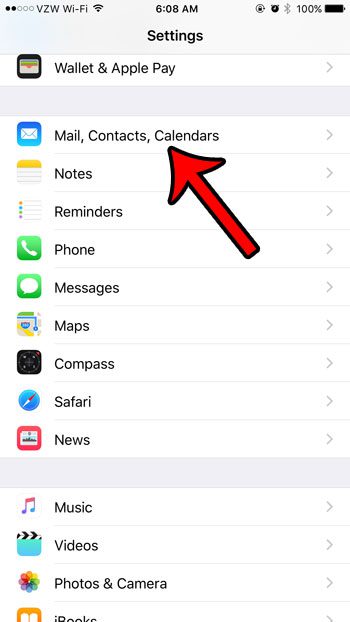 Schritt 2: Scrollen Sie nach unten und tippen Sie aufE-Mail, Kontakte, KalenderOption.