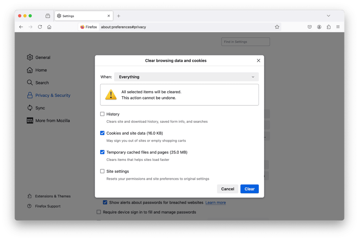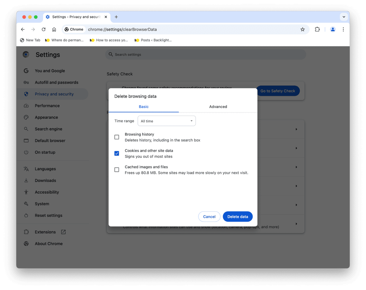 - Gehen Sie zu Datenschutz und Sicherheit und klicken Sie dann auf Browserdaten löschen.