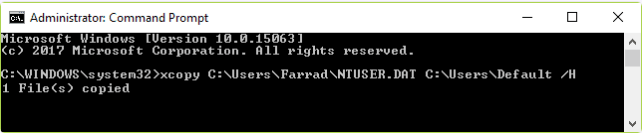 Schritt 3.Führen Sie nun diesen Befehl aus, um die Datei NTUSER.DAT durch die Datei im Verzeichnis C:UsersDefault zu ersetzen: Copy-Item C:UsersDefaultNTUSER.DAT -Destination C:UsersYOURUSERNAMENTUSER.DAT -Force
