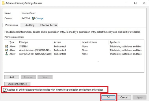 Schritt 4.Aktivieren Sie das Kontrollkästchen „Alle Berechtigungseinträge für untergeordnete Objekte durch vererbbare Berechtigungseinträge von diesem Objekt ersetzen“ und klicken Sie dann auf „OK“.