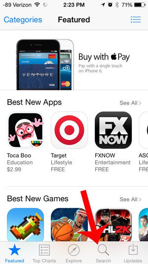 Schritt 2: Berühren SieSuchenSymbol am unteren Bildschirmrand.