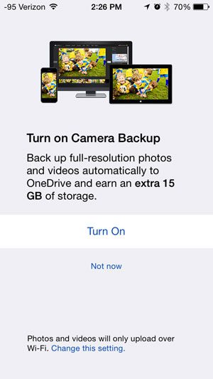 Schritt 7: Wählen Sie aus, ob Sie Bilder automatisch von Ihrem iPhone auf Ihr OneDrive-Konto hochladen möchten oder nicht. Dies ist eine wirklich nützliche Funktion, wenn Sie von einem Computer aus auf Ihre iPhone-Bilder zugreifen möchten, Ihr Gerät aber nicht oft mit Ihrem Computer synchronisieren.