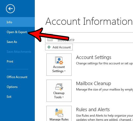 Schritt 3: Wählen Sie ausÖffnen und exportierenOption in der Spalte auf der linken Seite des Fensters.