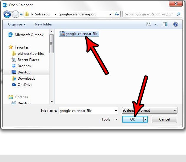 - Wählen Sie die Google Kalender-Datei aus und klicken Sie aufOK.