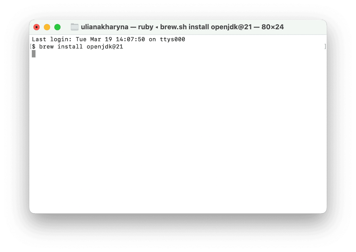 - Sobald Homebrew installiert ist, verwenden Sie diesen Befehl, um OpenJDK zu installieren: