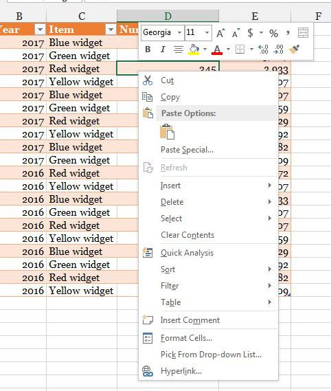 Schritt 1: Klicken Sie mit der rechten Maustaste auf eine der Zellen in der Tabelle, um das Kontextmenü aufzurufen.
