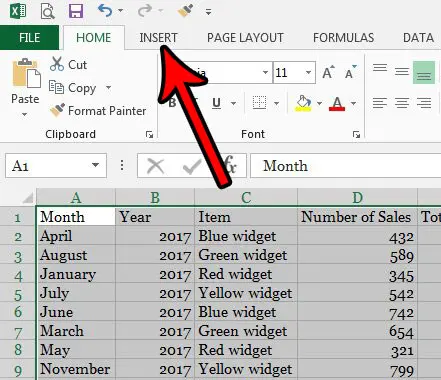 Schritt 3: Klicken Sie aufEinfügenRegisterkarte oben im Fenster.