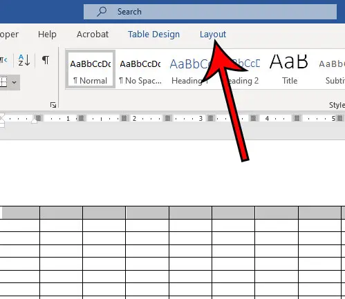 Schritt 5: Wählen Sie ausLayoutRegisterkarte rechts danebenTischdesignRegisterkarte oben im Fenster.