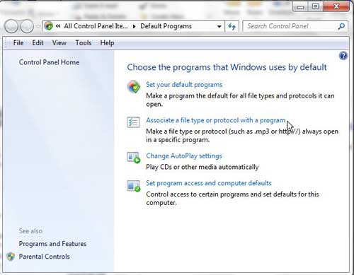 - Klicken Sie aufOrdnen Sie einem Programm einen Dateityp oder ein Protokoll zuLink.