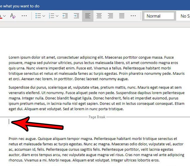 Weiter unten finden Sie in unserem Artikel weitere Informationen zum Entfernen eines Seitenumbruchs in Word Online, einschließlich Bildern dieser Schritte.