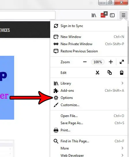 Unsere Anleitung folgt weiter unten mit zusätzlichen Informationen zum Entfernen der Suchleiste vom oberen Bildschirmrand in Firefox, einschließlich Bildern dieser Schritte.