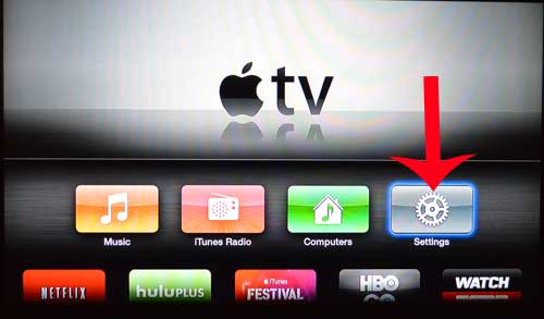 Schritt 1: Schalten Sie Ihren Fernseher ein und schalten Sie ihn auf den Eingangskanal um, mit dem das Apple TV verbunden ist. Halten Sie dann die Menütaste auf dem Apple TV gedrückt, um zum Hauptmenü zu navigieren.