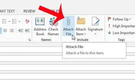 Schritt 4: Klicken Sie aufDatei anhängenSchaltfläche in derEnthaltenAbschnitt der Navigationsleiste.