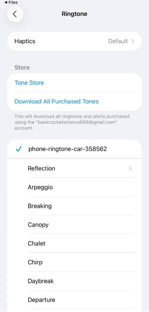 Gehe zuEinstellungen > Töne & Haptik > Klingelton, und wählen Sie einen Ton aus der nativen Bibliothek oder dem Tone Store aus.