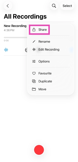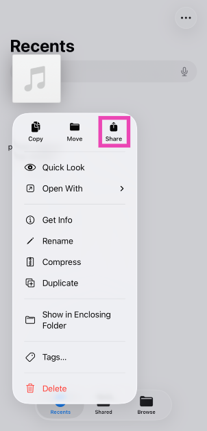 Schritt 3:Drücken Sie lange auf die Audiodatei und drücken Sie die TasteSymbol „Teilen“..