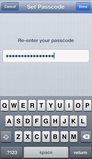 Schritt 6: Geben Sie das Passwort erneut ein und berühren Sie dannErledigtTaste.