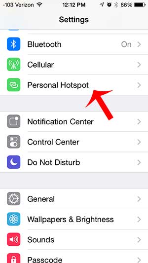 Schritt 2: Berühren Sie dasPersönlicher HotspotOption.