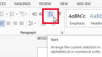Schritt 4: Klicken Sie aufSortierenSchaltfläche in derAbsatzAbschnitt des Menübands oben im Fenster.
