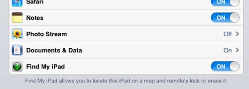 Öffnen Sie das iCloud-Menü auf dem iPadSchritt 3: Berühren SieFotostreamOption in der Mitte des Bildschirms.