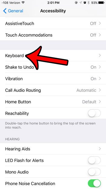 Weiter unten finden Sie unsere Anleitung mit weiteren Informationen dazu, wie Sie verhindern können, dass auf Ihrer iPhone-Tastatur Kleinbuchstaben angezeigt werden, einschließlich Bildern dieser Schritte.
