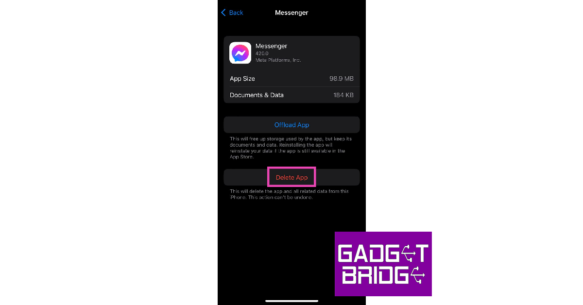 Gehe zuEinstellungen > Allgemein > iPhone-Speicher, wählen Sie Messenger und klicken Sie auf App löschen.