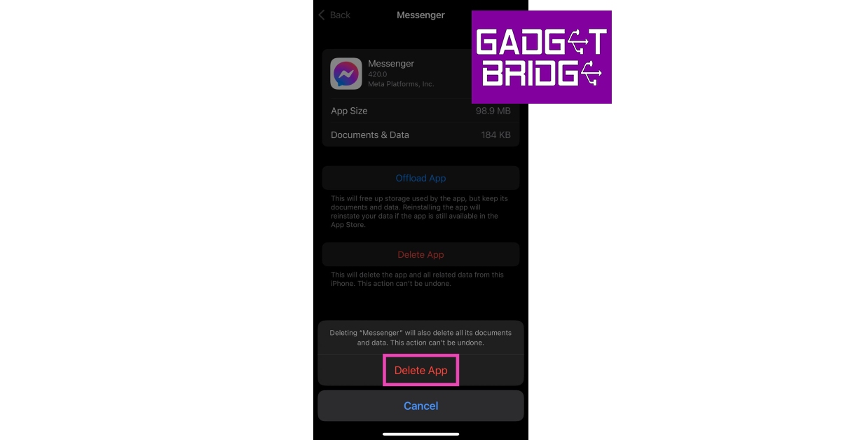 Schritt 3:WählenApp löschenum Messenger von Ihrem iPhone zu entfernen.