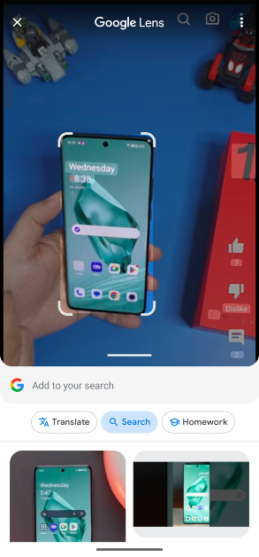 Halten Sie die Home-Taste oder die Gestenleiste gedrückt und kreisen Sie das Objekt ein, nach dem Sie suchen möchten. Wenn Ihr Telefon nicht über „Circle to Search“ verfügt, starten Sie den Google Assistant und tippen Sie auf „Suchbildschirm“.