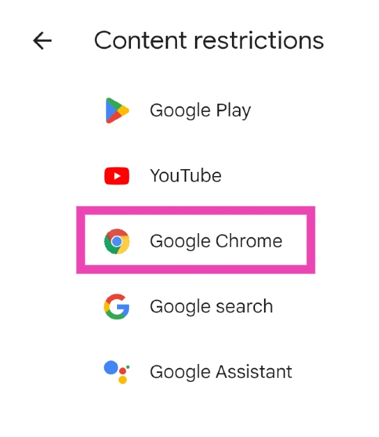 Schritt 12:Schalten Sie das einKippschalterneben den Apps, die Sie auf dem Gerät Ihres Kindes verwalten möchten. Stellen Sie sicher, dass der Kippschalter fürGoogle Chromeist eingeschaltet.