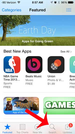 Schritt 2: Berühren Sie dasSuchenOption am unteren Bildschirmrand.