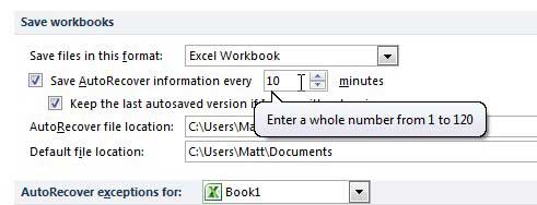 AutoRecover Excel 2010 häufiger