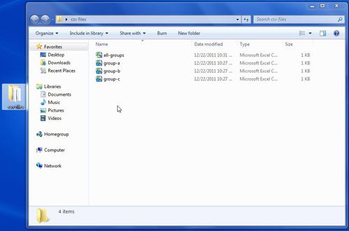 - Legen Sie alle CSV-Dateien im selben Ordner ab.