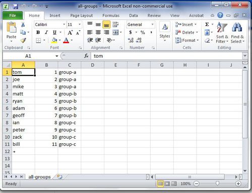 Sie können den Namen der Ausgabedatei von „all-groups.csv“ in einen beliebigen Dateinamen ändern.
