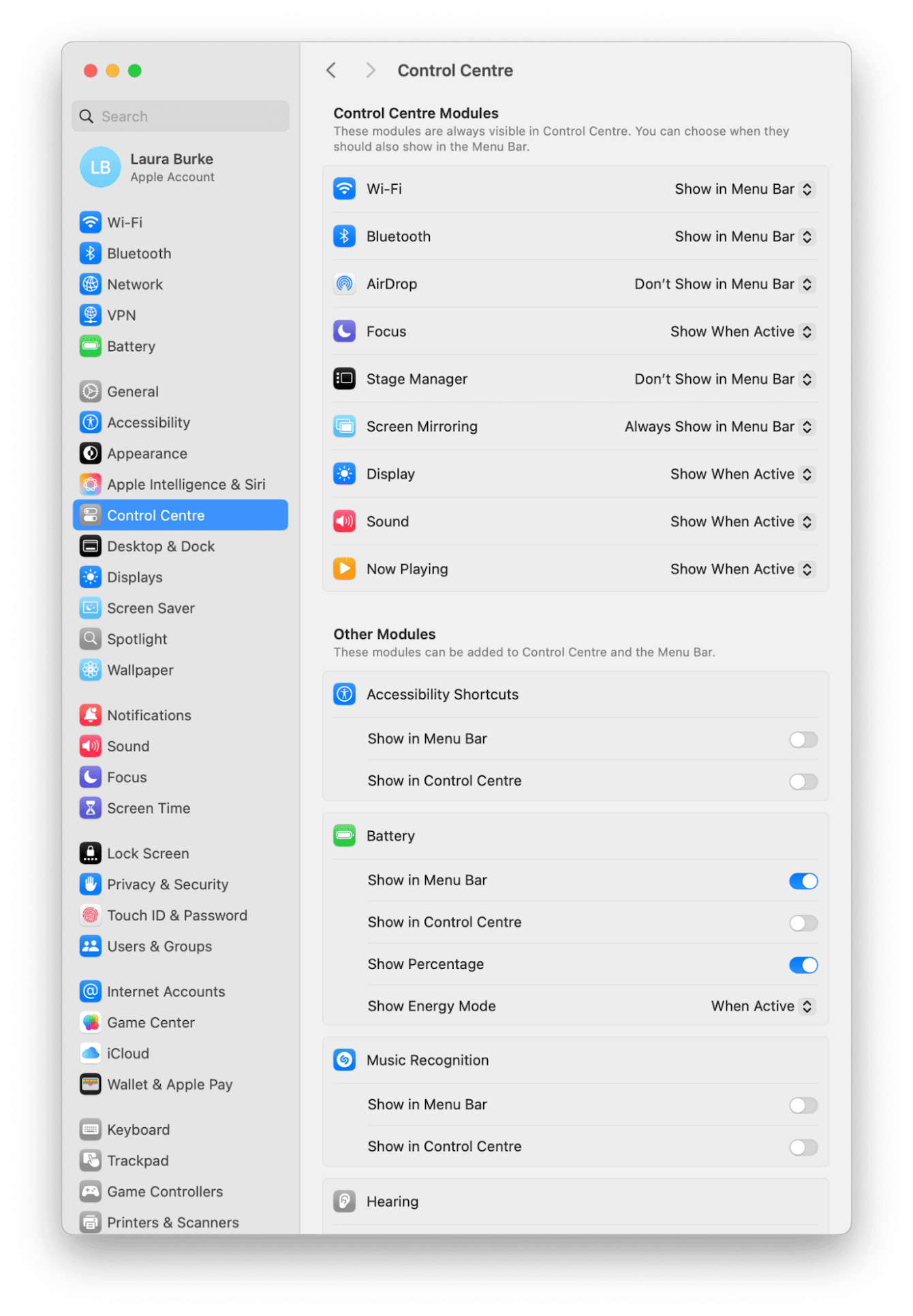 Öffnen Sie Systemeinstellungen > Kontrollzentrum.