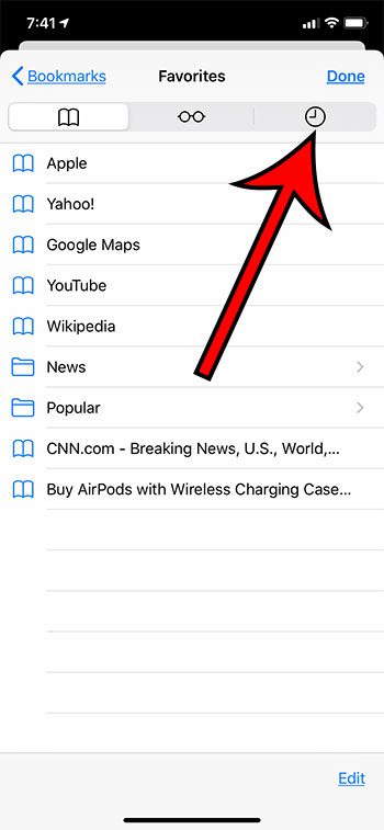 Sie können dies tun, indem Sie es öffnenSafari, tippen Sie aufLesezeichenSymbol, wählen Sie das ausGeschichteRegisterkarte und wählen Sie dann die ausKlarOption unten rechts auf dem Bildschirm.