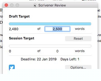 Unten im Schreibbereich finden Sie ein Bullseye-Symbol. Wenn Sie darauf klicken, können Sie eine Wortanzahl für dieses Kapitel oder diesen Abschnitt festlegen.