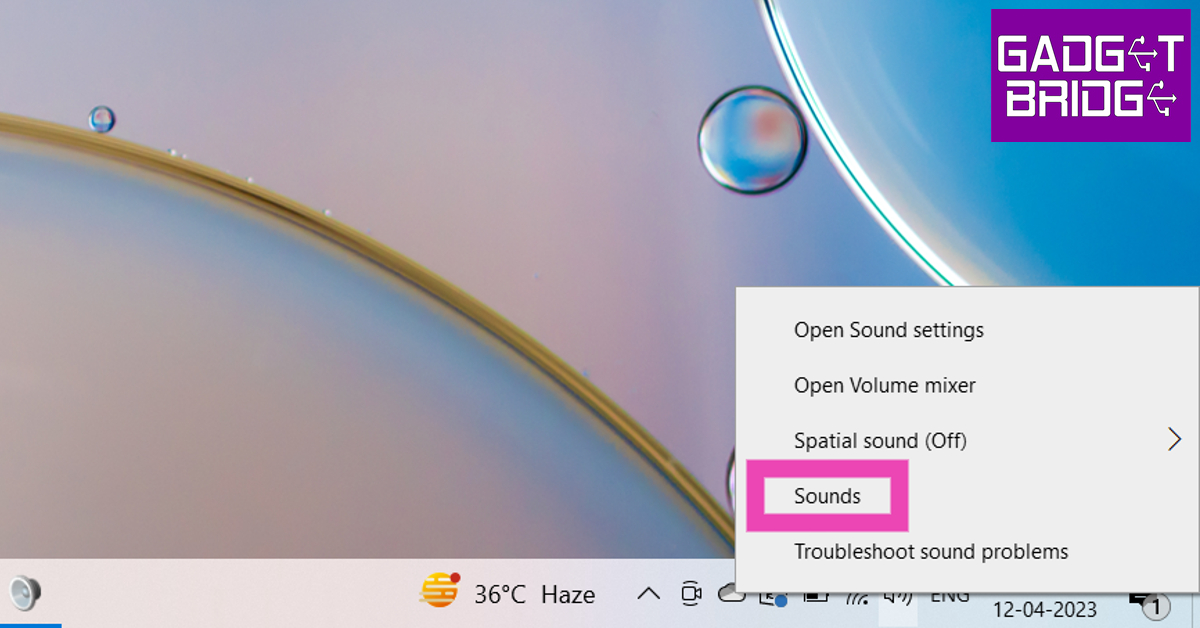 Schritt 1:Klicken Sie mit der rechten Maustaste aufLautstärkesymbolin der Taskleiste am unteren Bildschirmrand. WählenKlingt.