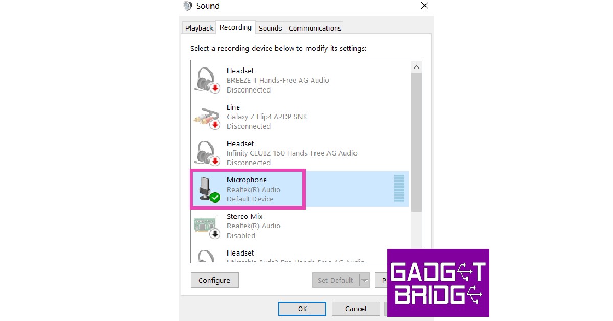 Schritt 3:Wählen Sie Ihr ausMikrofonund legen Sie es als festStandard Gerät.