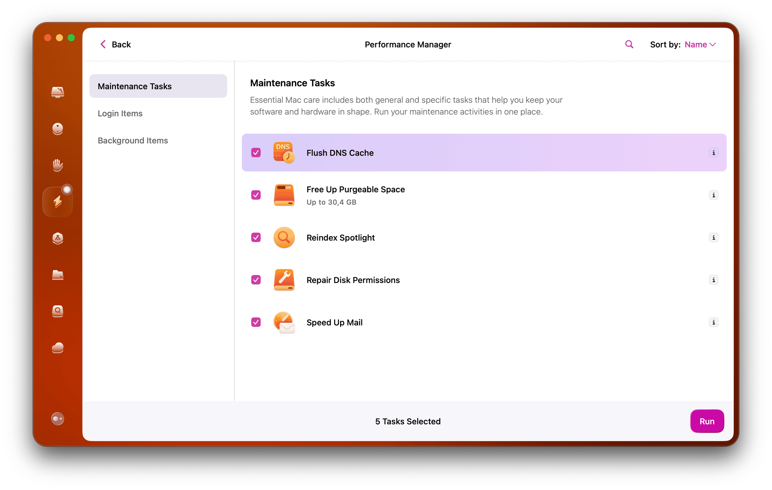 Wenn Ihr DNS- oder Netzwerk-Cache-Müll dazu geführt hat, dass Ihr Browser langsam läuft, verwenden Sie die Leistungsfunktion vonCleanMyMac, das einen Flush-DNS-Cache und anderen browserbezogenen Müll enthält; So geht's: