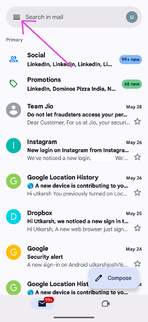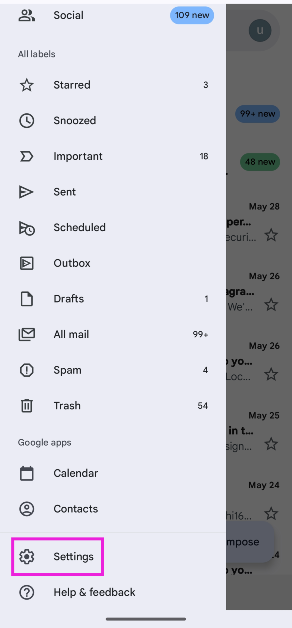 Gehen Sie zur Gmail-App, tippen Sie auf das Hamburger-Menü, gehen Sie zu Einstellungen und tippen Sie auf das Kontrollkästchen neben „Gmail synchronisieren“.
