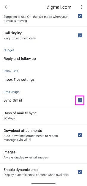 - Die Synchronisierung ist in der Gmail-App deaktiviert