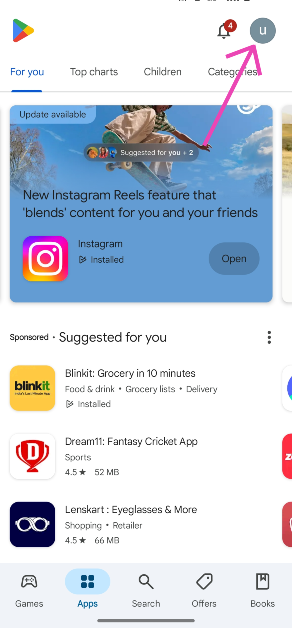 Schritt 2:Tippen Sie auf IhrProfilsymbolin der oberen rechten Ecke des Bildschirms.
