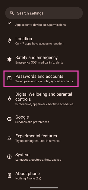 Schritt 1:Gehe zuEinstellungenund auswählenPasswörter und Konten.