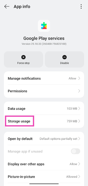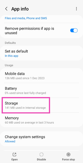 Schritt 3:Tippen Sie aufSpeichernutzung.