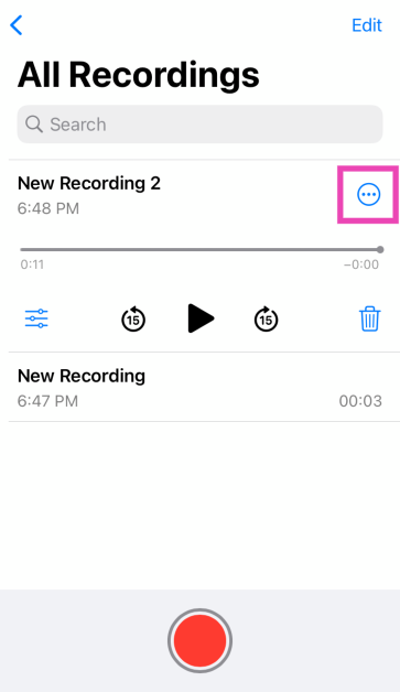 Schritt 2:Gehen Sie zur Sprachmemos-App und suchen Sie nachAufnahmeSie transkribieren möchten.