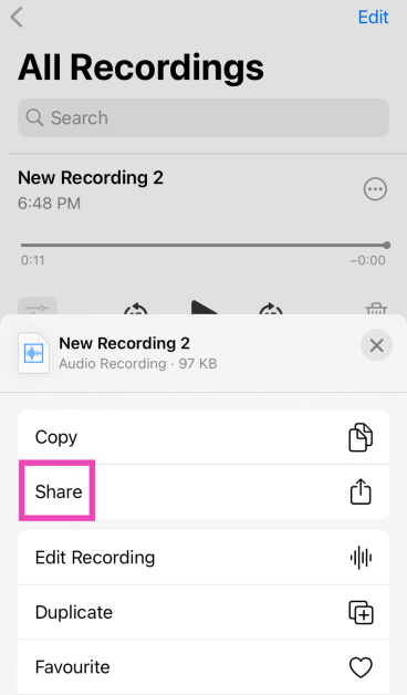 Schritt 2:Gehen Sie zur Sprachmemos-App und suchen Sie nachSprachaufzeichnungdie Sie transkribieren möchten.