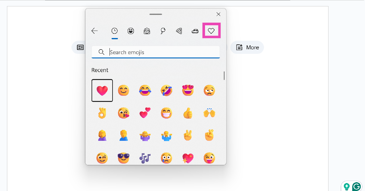 Wenn Sie auf einem sindWindows PCdrücken Sie dieFensterUndZeitraum(.) Tasten zum Auslösen der Emoji -Tastatur. Mac -Benutzer können drückenCMD + Strg + Spacefür dasselbe. Sobald Sie sich auf der Emoji -Tastatur befinden, wechseln Sie zur Registerkarte Symbole und wählen Sie Ihr bevorzugter Herz -Emoji aus.